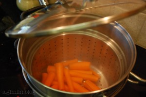 Since the carrots take longer than the apples did, I put the carrots in the bottom steamer (I have a double layered steamer), and steamed them for about 15 minutes.
